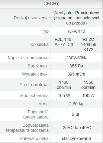 Wydajność - 395 m3/h
